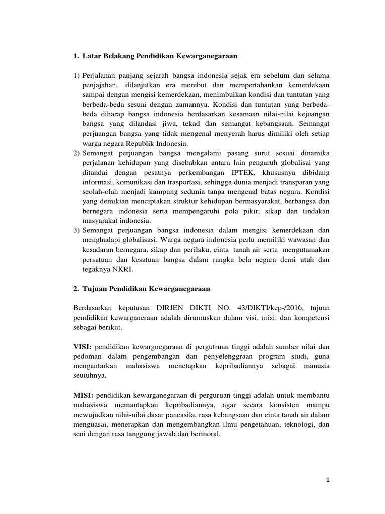 Latar belakang diadakannya kewarganegaraan adalah bahwa semangat perjuangan bangsa yang merupakan kekuatan mental.